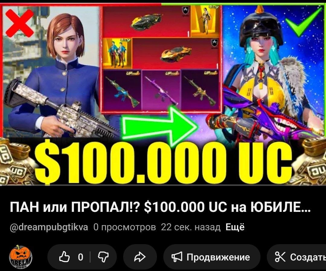100.000 UC!! Новый РОЗЫГРЫШ на 77.777 UC + новое видео с прокачкой формата "Пан или Пропал" на 100К UC