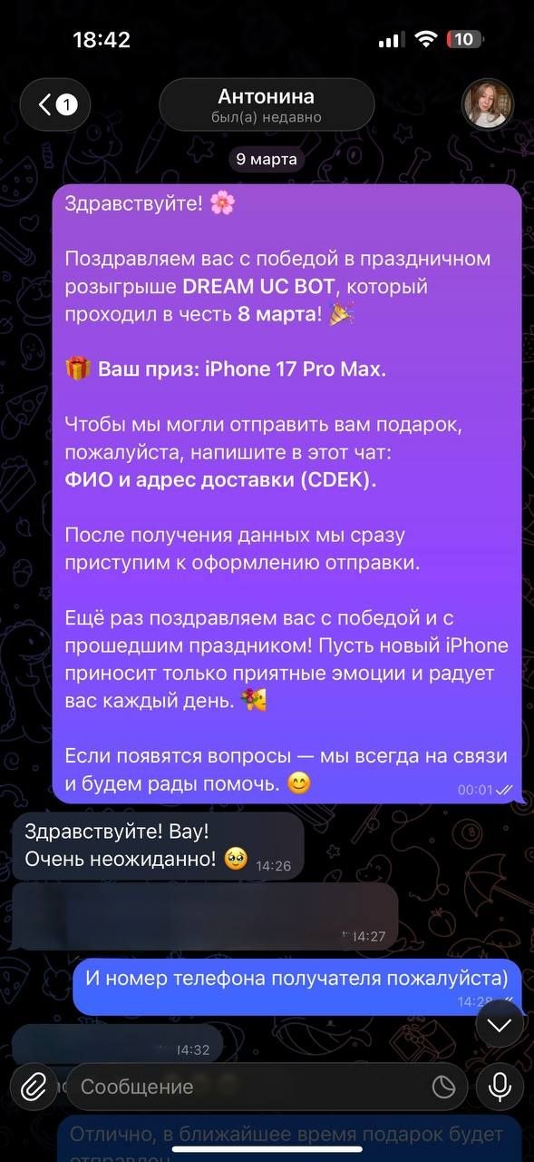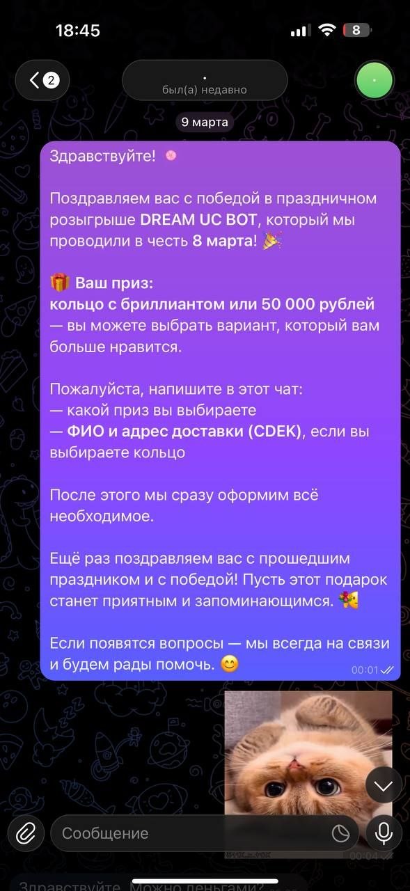 Привет, поздравляю ты выиграл прокачку у DreamPubg на 1.000.000.000 UC и у тебя ровно 1 секунда чтобы предоставить свой игровой ID